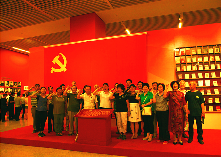 “马克思主义中国化的光辉历程”展示了马克思主义理论中国化的光辉理论成果:毛泽东思想、邓小平理论、“三个代表”重要思想、科学发展观和习近平新时代中国特色社会主义思想。离退休支部的老同志们有很多出生于建国之前,他们亲历了马克思主义中国化带给中国社会、人民生活的巨大变革。从一本本历史文稿、一张张珍贵的照片、一部部经典专著中,重温历史、倾听回忆,感受到传承,激发出斗志。在这个展厅里,马莹书记带领大家一起在党旗面前重温入党誓词,那一刻,大家热血沸腾,身为一名共产党员的自豪感和使命感油然而生,大家深刻感受到了在中国化马克思主义的指引下,中国共产党率领全国各族人民不断奋进,凝聚起同心共筑中国梦的磅礴力量!