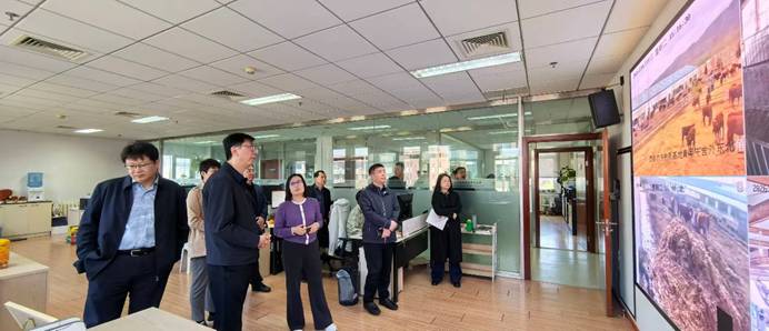 近日,山东省淄博市农业农村局党组书记、局长杨溯易,高青县县委书记高原一行到访中国农业科学院北京畜牧兽医研究所,双方围绕高青黑牛新品种培育及产业高质量发展进行调研交流。牧医所副所长李俊雅、加工所副所长庄严陪同调研。